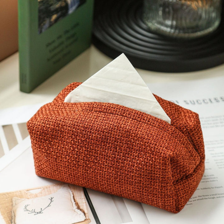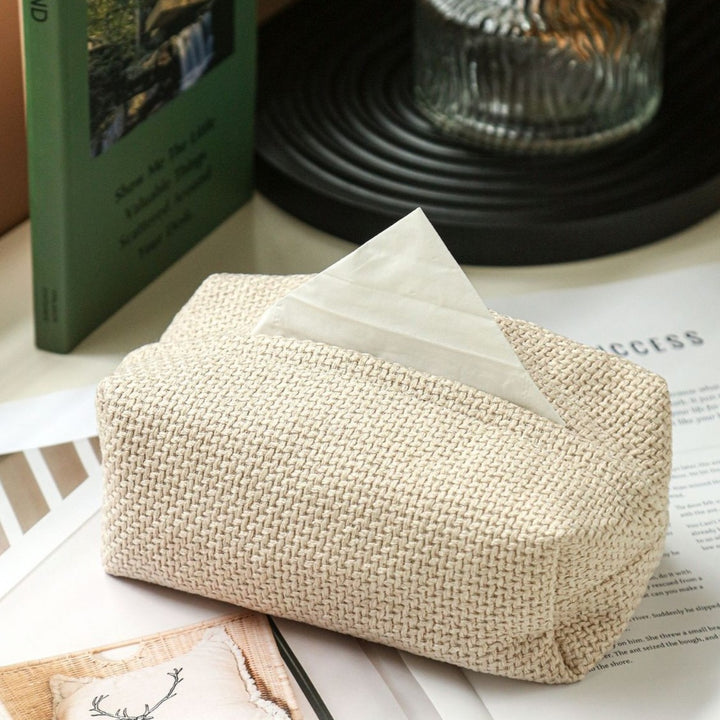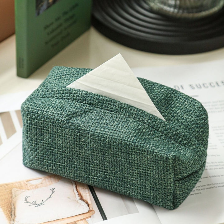 Simple solid-color fabric tissue box cover, stylish and practical for home or office.