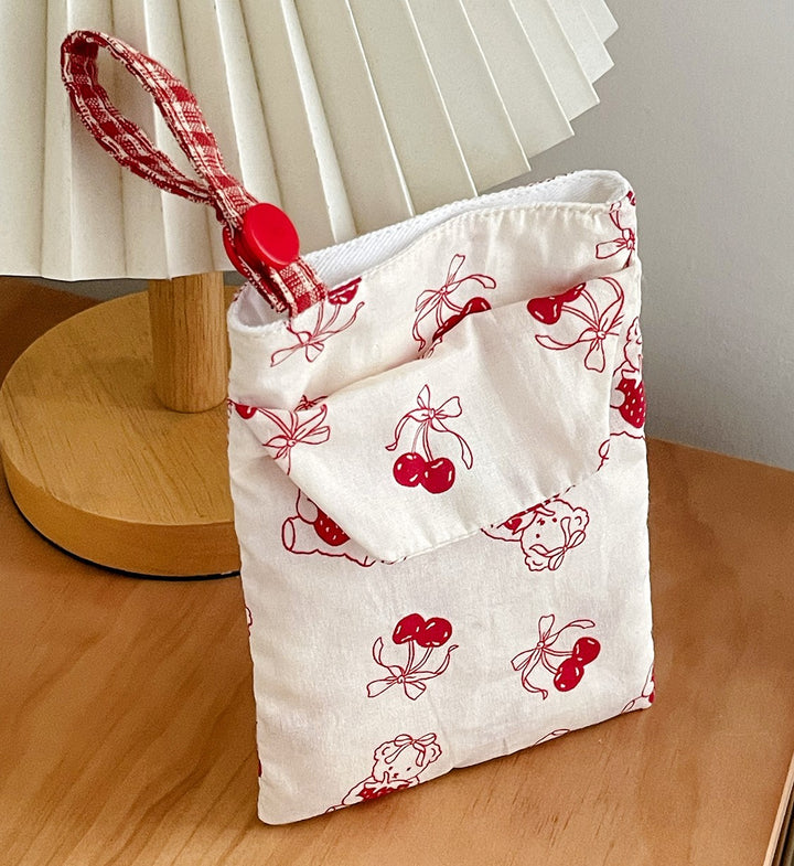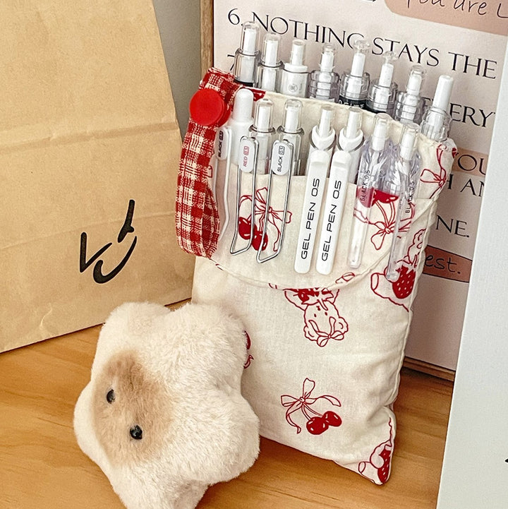 Charming and lightweight, this white-and-red square pouch with a rabbit design is ideal for daily stationery organization. Minimalist and zipper-free for easy access.