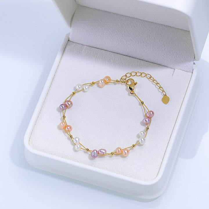 A cheerful blend of colorful pearls on a titanium steel chain, bringing playful energy and sunny vibes to your wrist. Perfect for daily joy and vibrant style.