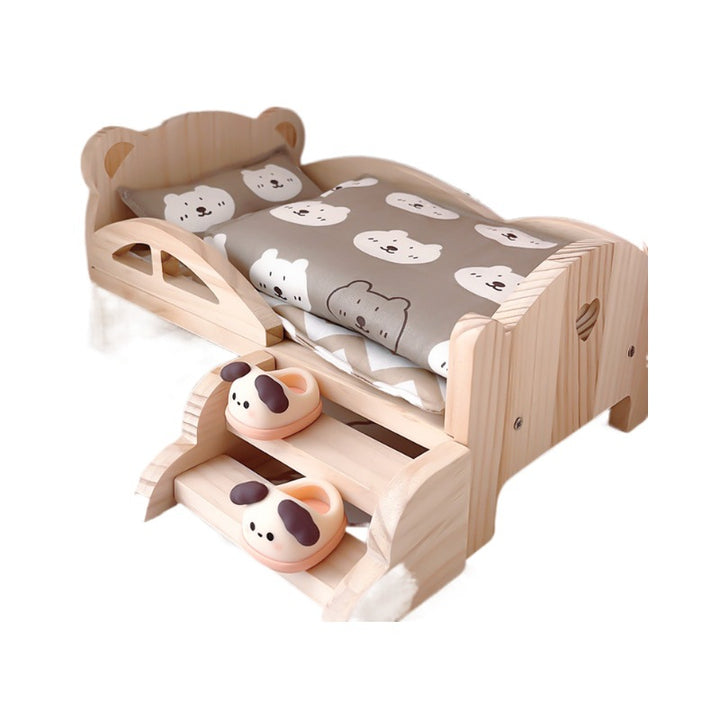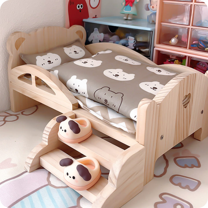 - Includes: Wooden bed ×1, Mattress ×1, Blanket ×1, Pillow ×1, Slippers ×1 pair