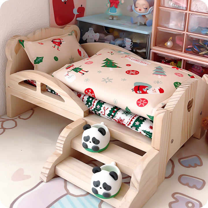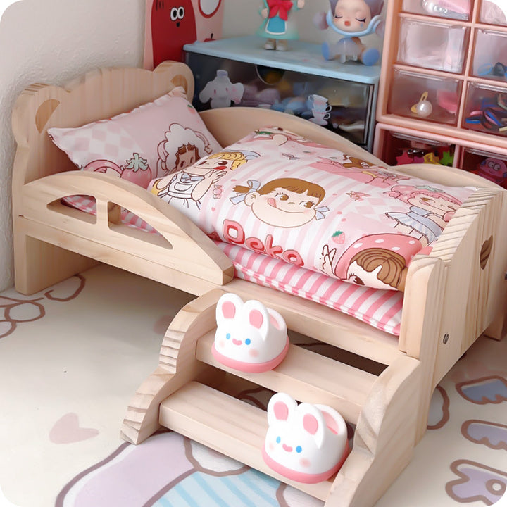 Let your doll sleep in cozy style. This 5-piece set includes a smooth wooden bed, soft bedding, and a cute pair of slippers — perfectly sized for 20cm dolls like Labubu. Ideal for play, display, or photo scenes.
